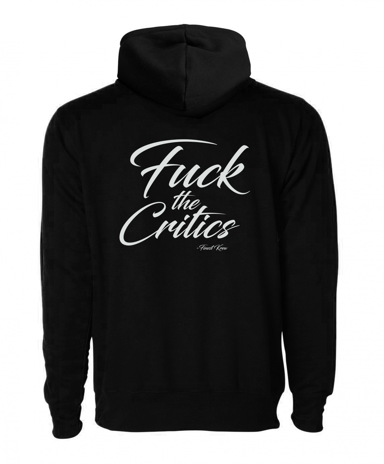Fuck The Critics on back of Hoodie NJF Logo Left Chest on the front in white.